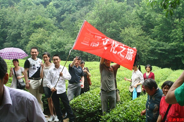 在宣酒解说员的带领和讲解下,来访一行欣赏到诗酒长廊上雕刻隽秀的古诗词,评鉴到众多诗人与宣城、与宣酒的不解之缘;江南小窖群内整齐划一的小窖池,工人们挥汗如雨的手工酿酒过程,让大家纷纷感叹“小窖原来是这样的呀!”“小窖酿造不简单。”特别是当解说员讲到企业“幸福石、千字石”的由来和实质时,大家都点头称赞起来。奇木怪石、曲水流觞、投壶游戏、酒道表演……更是让大家流连忘返,纷纷拿起相机留影留念。