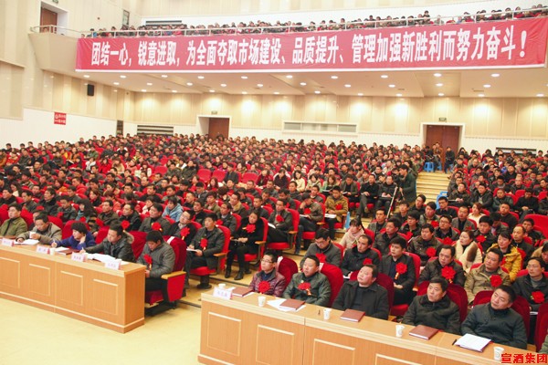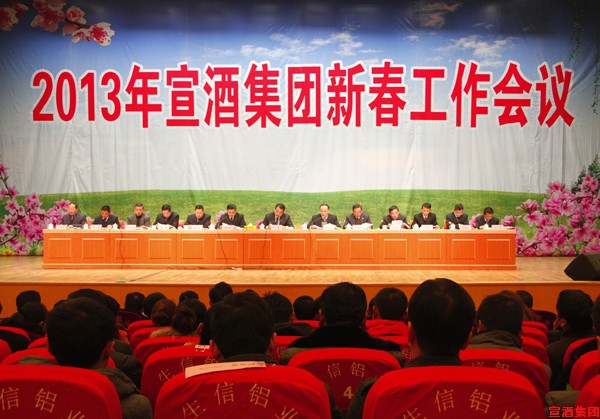 2013年2月16日下午,宣酒集团2013年新春工作会议在红星礼堂召开,公司全体高层管理人员,全体内勤人员,营销总公司外勤市场人员以及各渠道负责人,生产部业务骨干及班组长以上人员,近千人参加了会议。公司副董事长、营销总公司总经理芮小龙主持会议,副董事长、总经理郑建新做了公司二0一二年工作总结和二0一三年总体工作思路和运营计划报告,行政总监迟有飞宣读了公司任职通知和表彰通报,董事长李健做重要讲话。