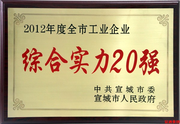 2月21日下午,全市招商引资暨工业发展大会在红星礼堂隆重召开,会上,宣酒集团接受了中共宣城市委、宣城市人民政府表彰,又一次获得 2012年度全市工业企业“综合实力20强”荣誉称号,位居排行榜第二。